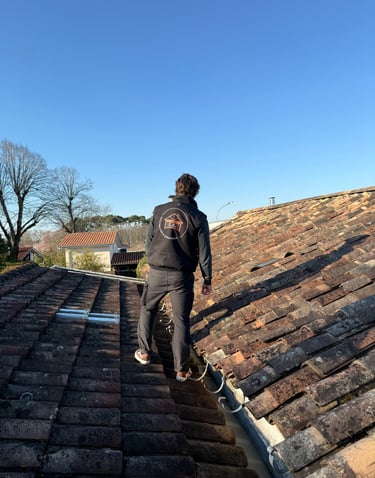 Tout commence bien avant la création officielle de l’entreprise. Jean-Félix Lataste n’avait pas encore quitté les bancs de l’école qu’il savait déjà ce qu’il voulait faire de sa vie : travailler de ses mains, construire, réparer, protéger… et surtout, monter sur les toits. Dès l’adolescence, il aime donner des coups de main à sa famille, grimper, observer les paysages depuis les hauteurs, respirer l’air libre. Il y a dans ce geste de “monter sur le toit” quelque chose d’instinctif, presque viscéral. C’est à cette époque qu’il se rend compte que le métier de couvreur n’est pas simplement un travail manuel : c’est un art, une tradition, un métier d’extérieur qui le connecte à la nature et au patrimoine bâti.