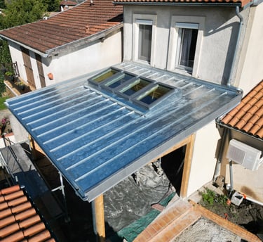 Nous réalisons tous vos travaux de zinguerie : gouttières, chéneaux, noues, abergements… Pour une toiture étanche, durable et esthétique, en neuf comme en rénovation, sur tout type de bâtiment.